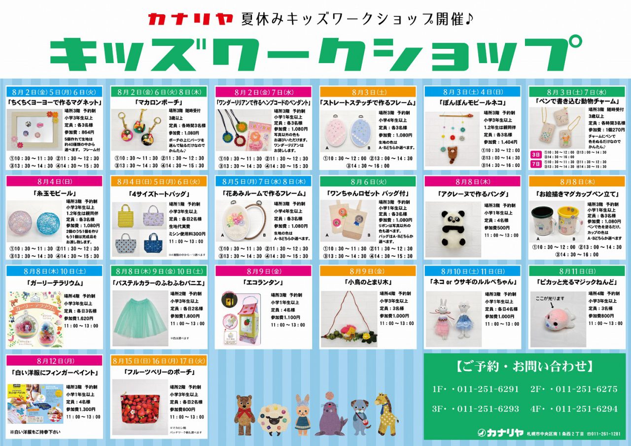 2019年8月、カナリヤ本店では「夏休みキッズワークショップ」を開催致します。