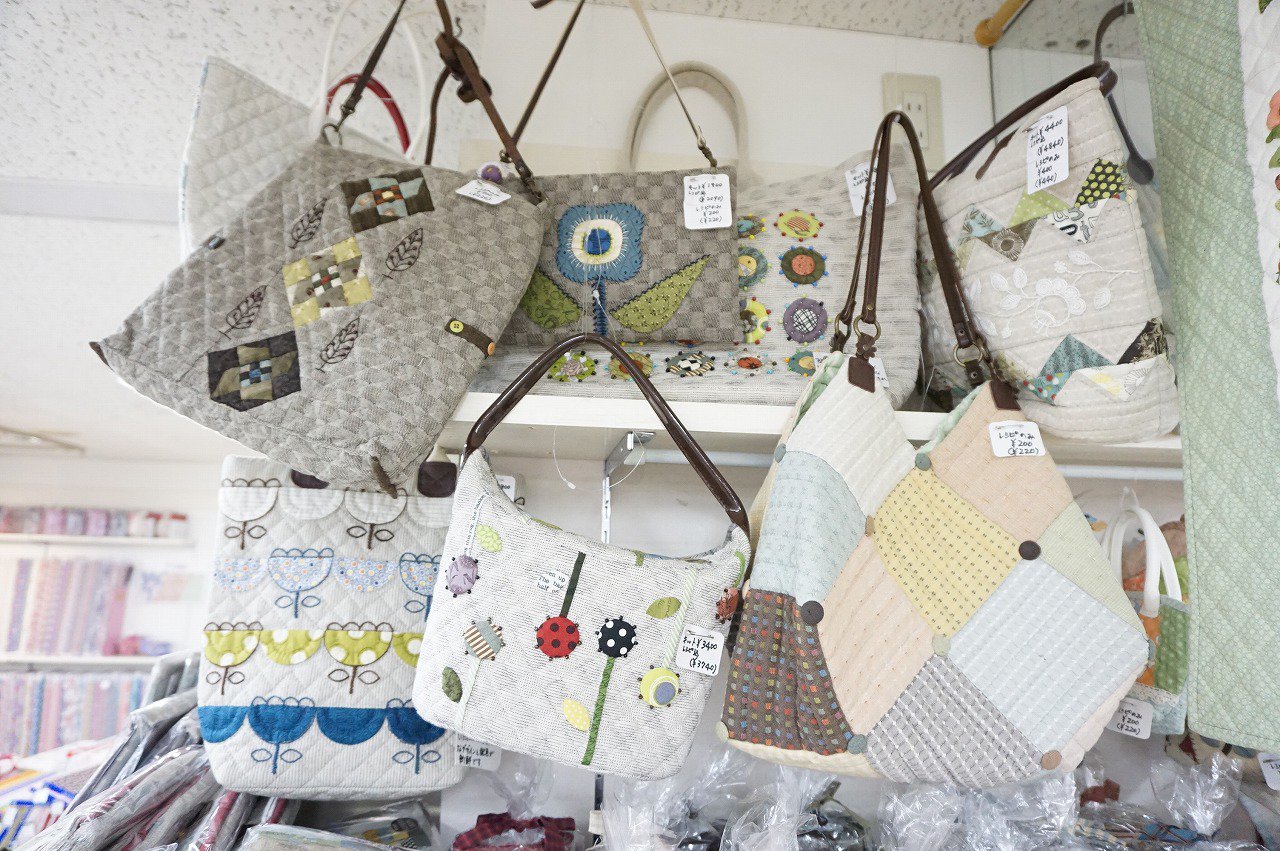 落ち着いた色合いと可愛らしいデザインの作品が多く、国内・海外からも人気です!会場には作品展示の他、キットやカットクロス、ハギレパックなど見応えのあるものばかりです。タペストリーやバッグ、ポーチなどどの作品も必見です♪