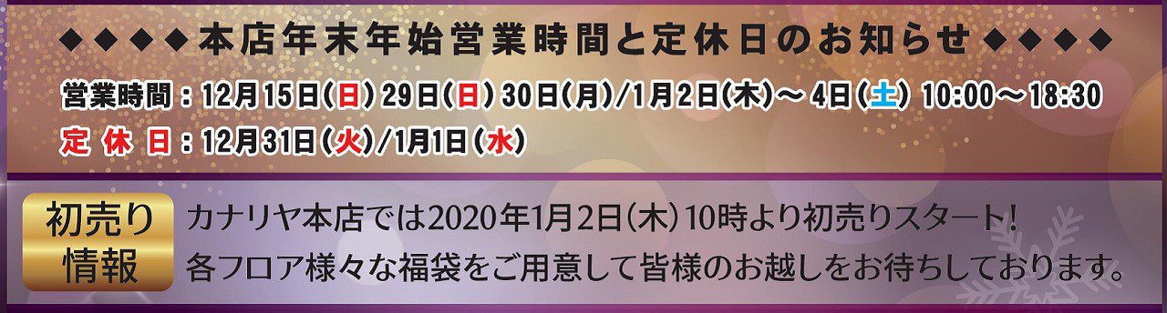 カナリヤ本店では2020年1月2日(木)10時より初売りスタート!