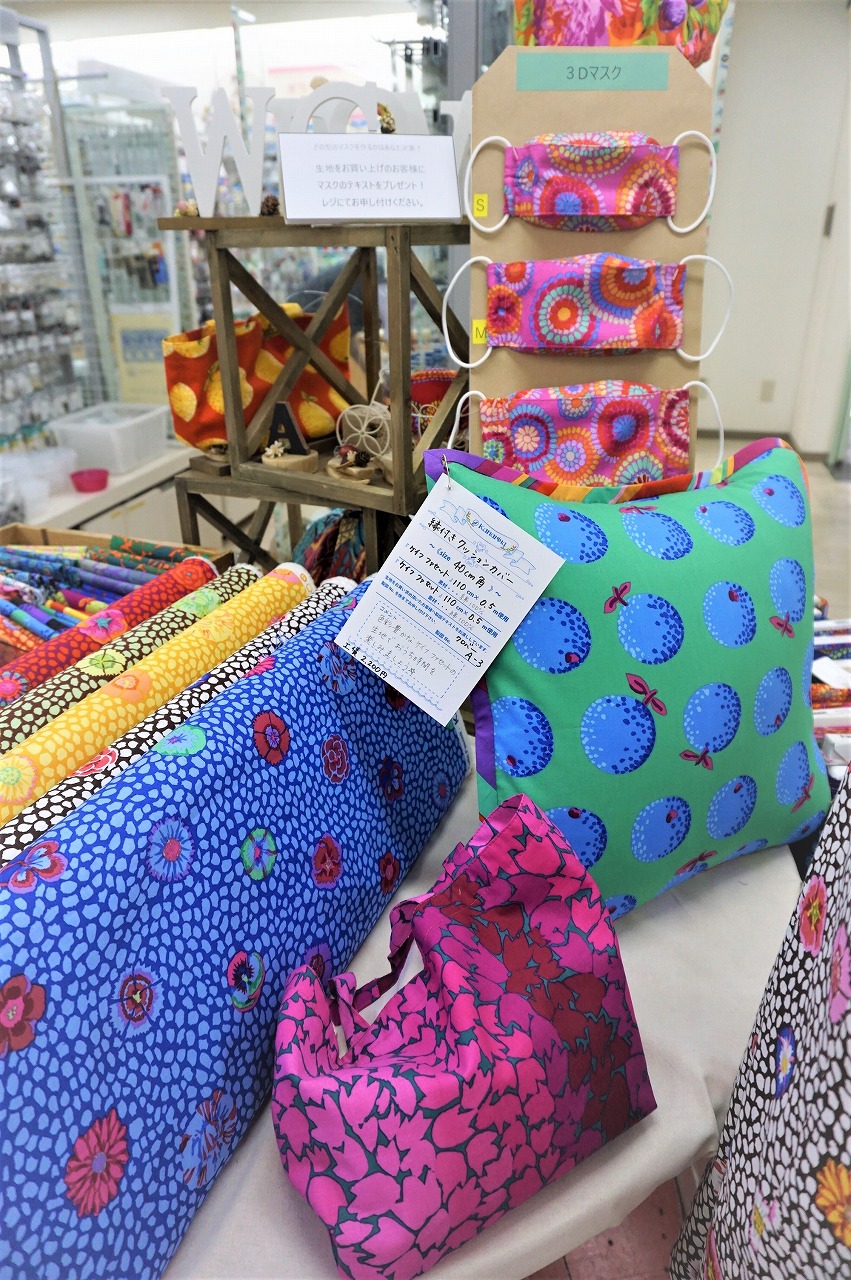 生地はどれもカラフルで夏らしいです。お洋服やエコバッグ、マスク作りなどにおすすめです!厚みも厚すぎず薄すぎないので縫いやすい素材です。