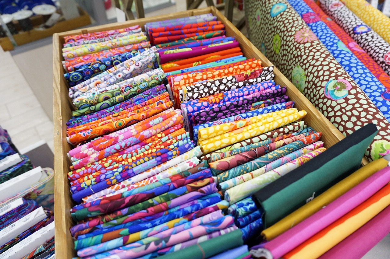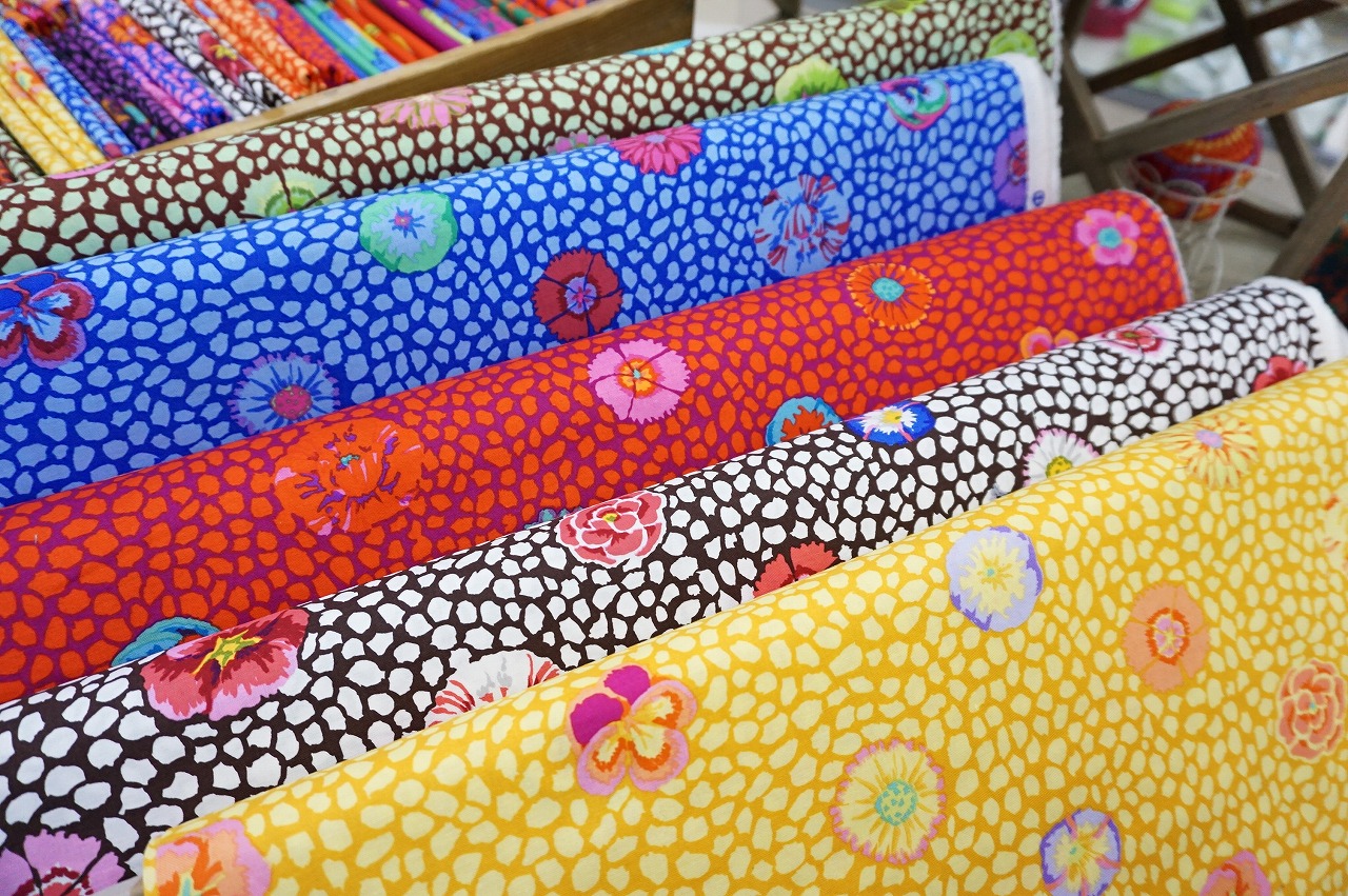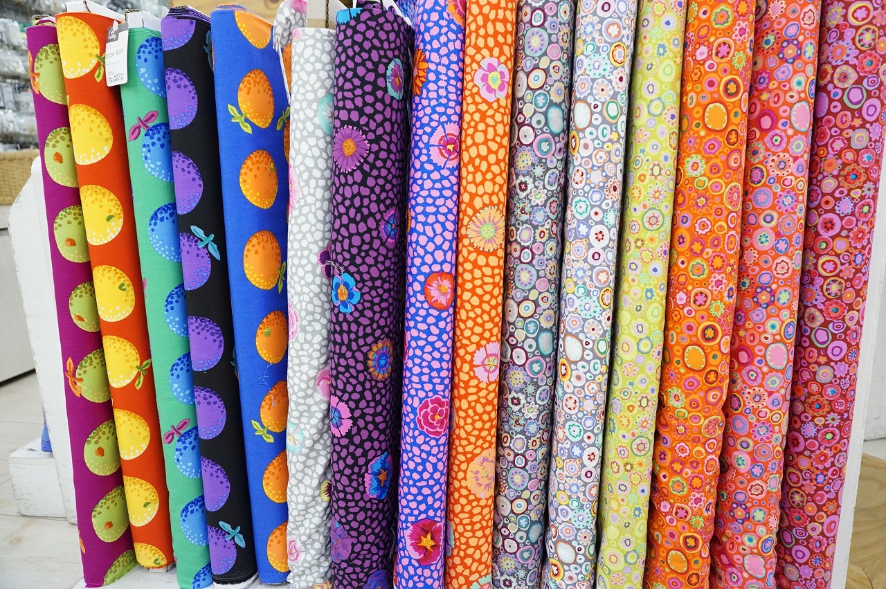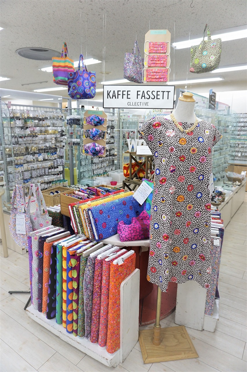 ケイフファセット(KAFFE FASSETT)の生地は色使いが鮮やかであり、ダイナミックで華やかなデザインが豊富なのが特徴です。見た瞬間、明るい気持ちにさせる生地が多いのでファンの方やポップな生地をお探しの方は必見です☆
