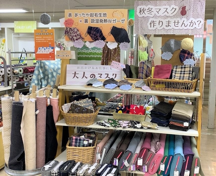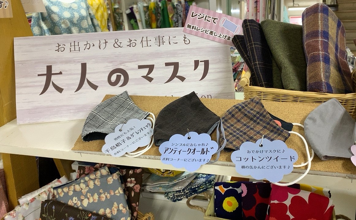 生地をご購入の方はレジにてマスクの無料レシピを差し上げています。