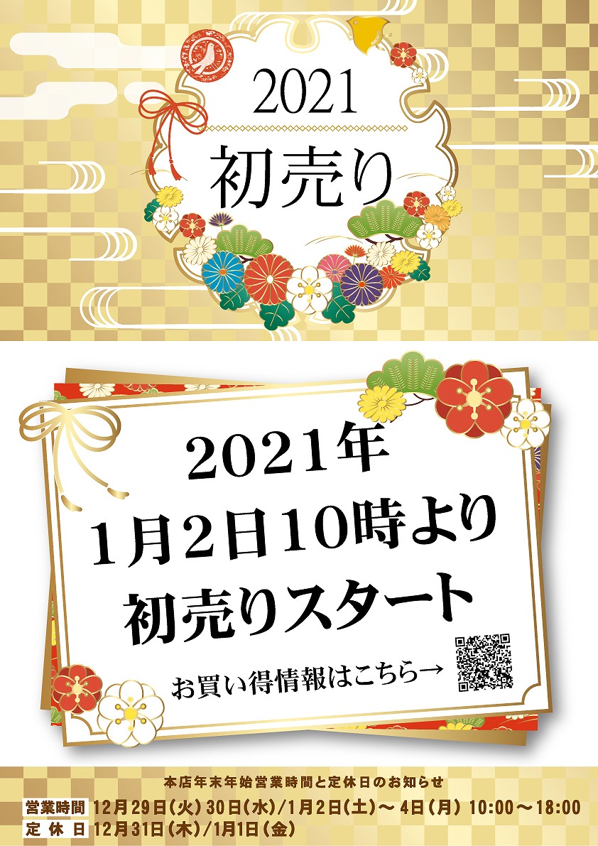 本店の「2021初売り」は2021年1月2日(土)10:00よりスタート致します!