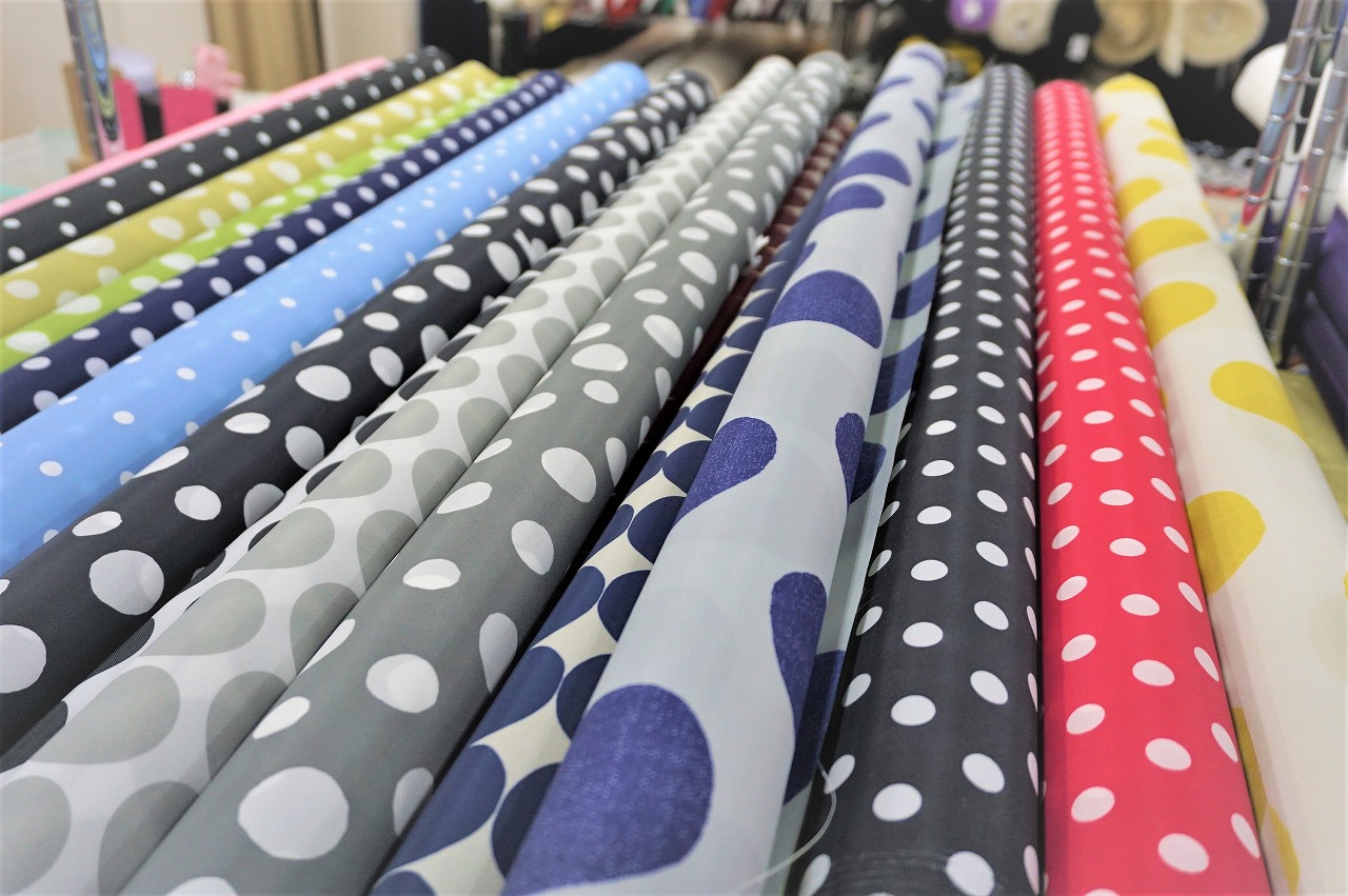 カナリヤ本店2階には種類豊富にナイロン生地が揃っております。