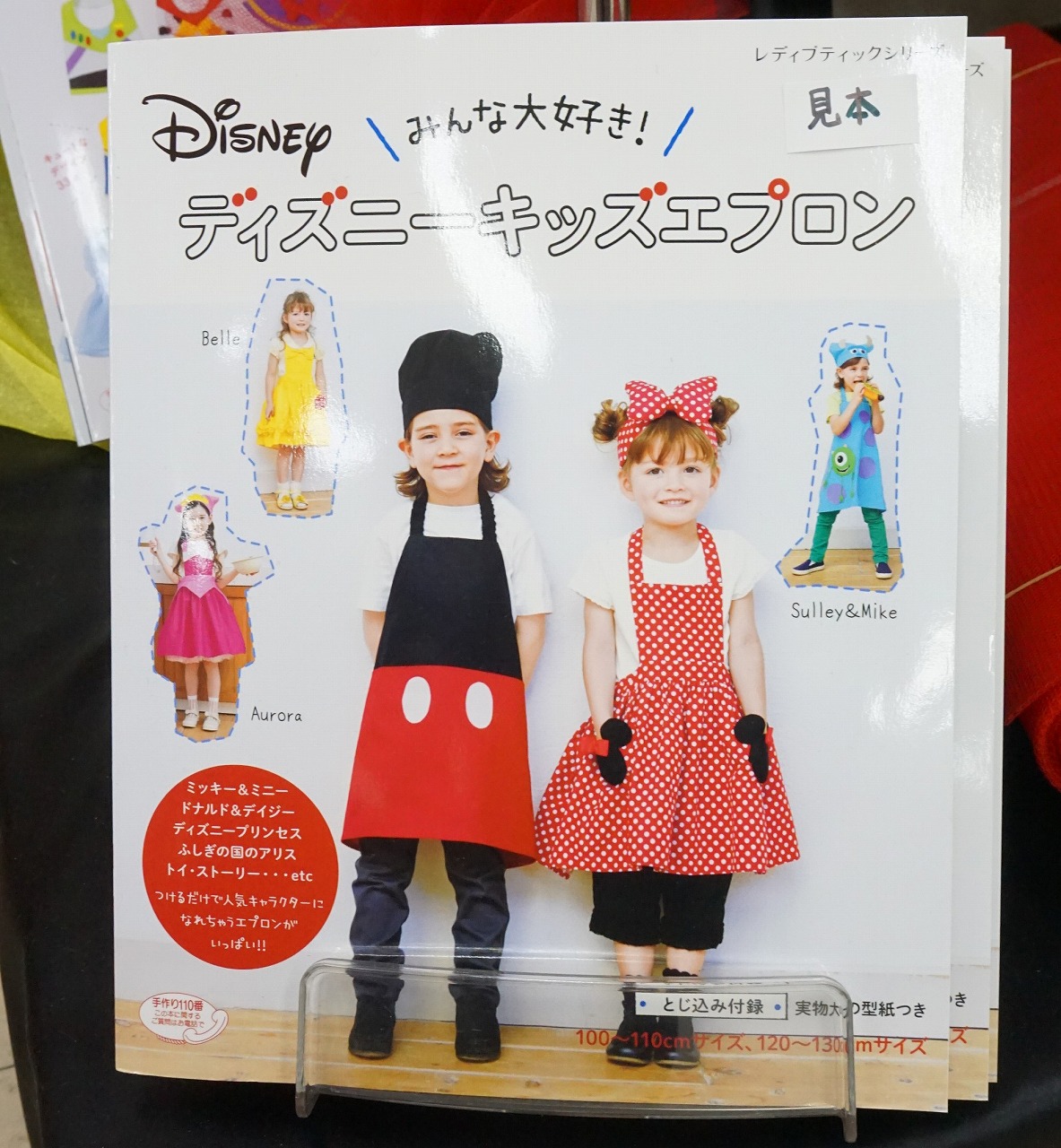 ディ●ニーキャラクターモチーフのエプロンとスタイ、プリンセスシリーズのスタイを展示致しております。