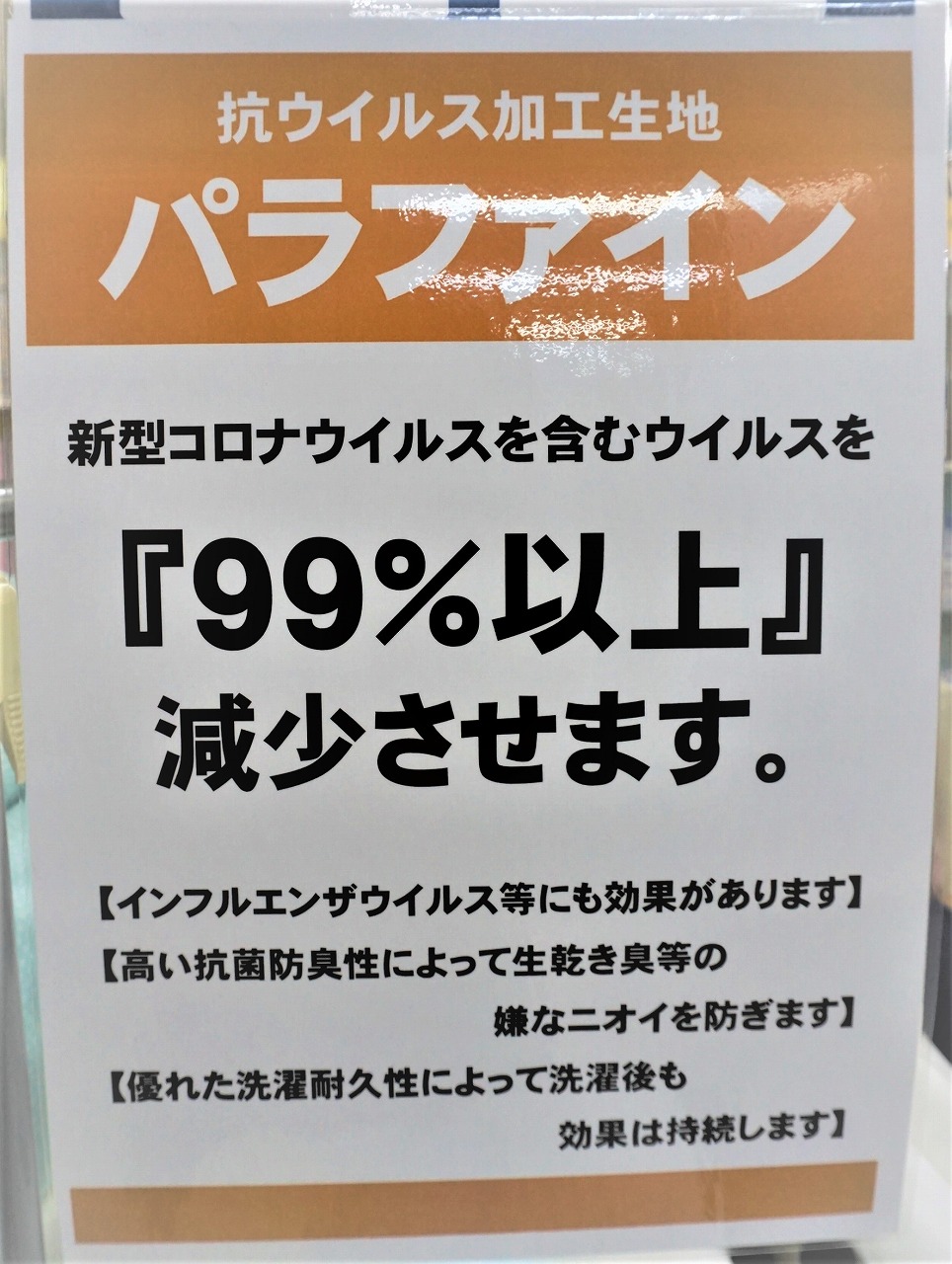そしてクレンゼの他にもシングルガーゼで抗ウイルス加工された生地「パラファイン」もございます。