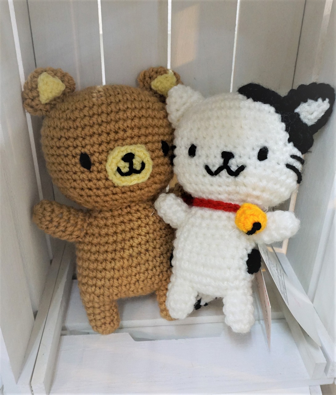 それぞれあみぐるみ(左)と干支ぐるみ(右)が立体的で表情豊かです。丈夫な作品を作りたいときに参考にしていただきたい見本です。
