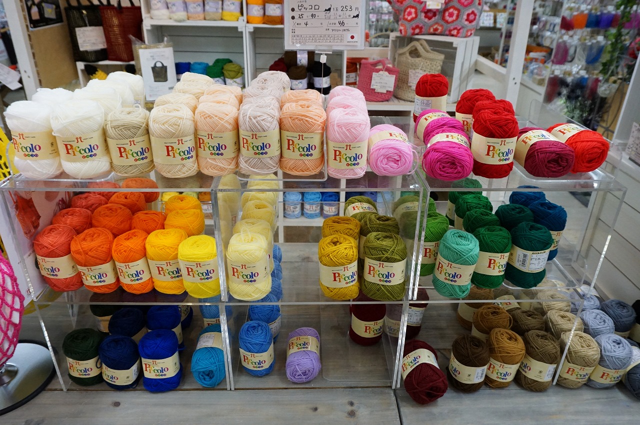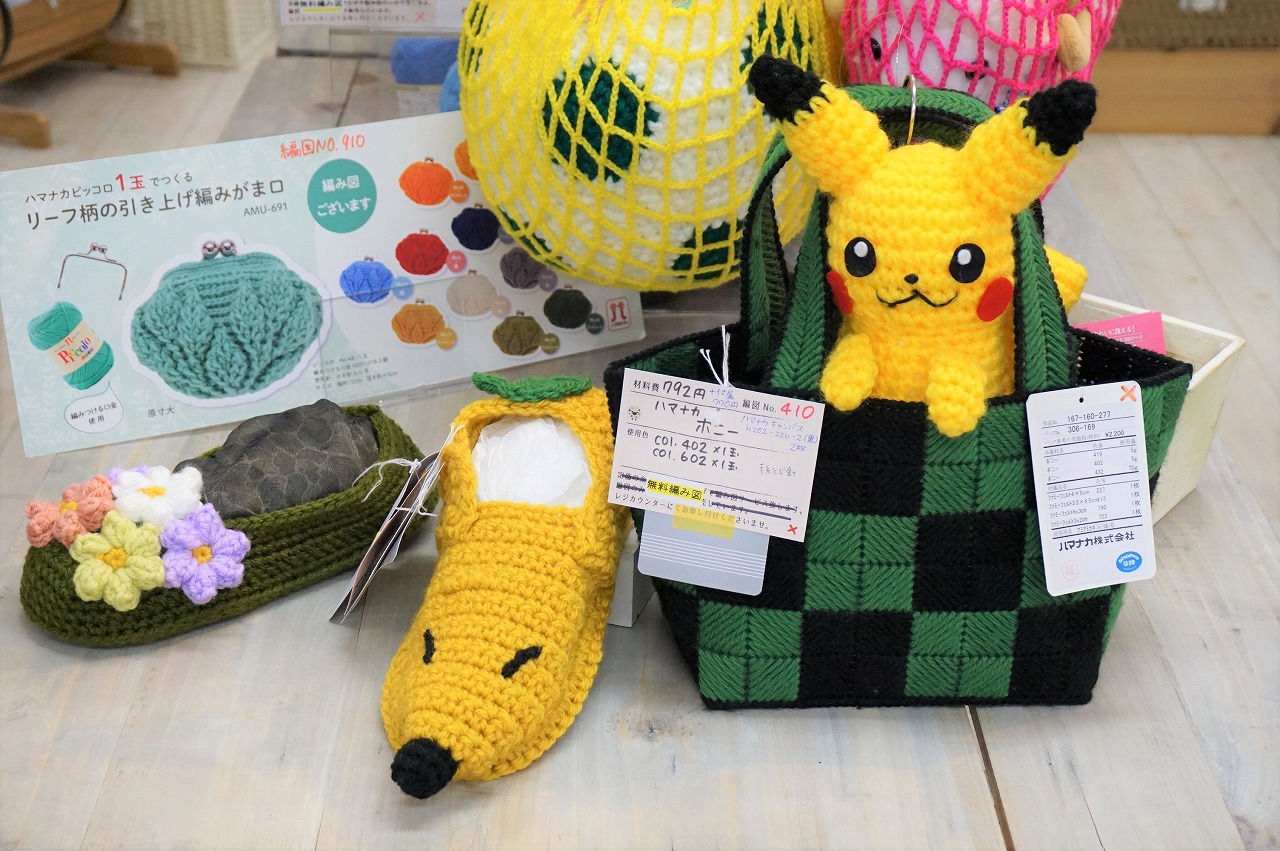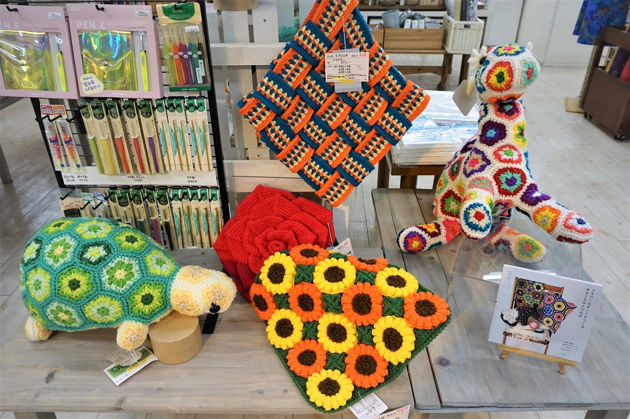 あみぐるみやバッグ、円座・角座やエコたわし等、毛糸と見本作品が充実したカラフルな売場になり、さらに見やすくなりました♪