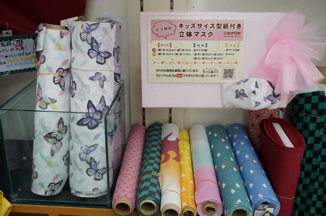 本店2階にはファンにとって楽しい売場になっています。アニメプリントの他、コスプレに使える特殊生地や洋服やマスク作りにぴったりの衣料生地が豊富に揃っているのでこだわりの生地で何か作ってみてはいかがでしょうか。