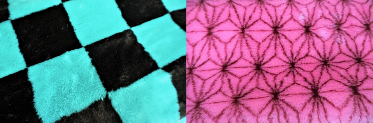 ファーも兄妹で使用されている「市松模様」・「麻の葉模様」の2種類販売致しております。なめらかで暖かくラグや毛布におすすめです。