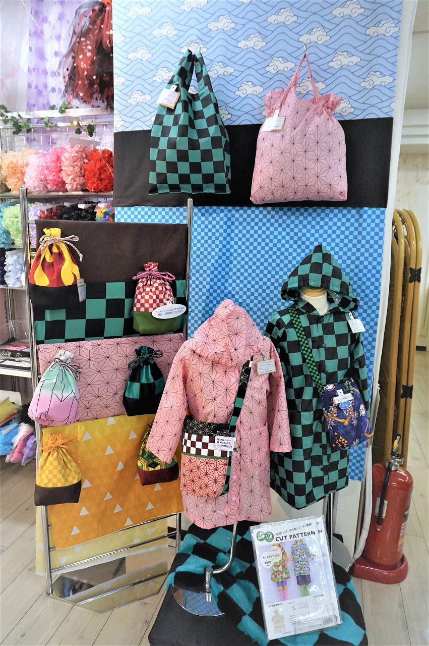 昨年より拡大されたアニメプリントコーナーにはコスプレや入園入学式向けの生地が豊富に揃っています♪おうち時間にくつろげるアイテム作りにもおすすめです!