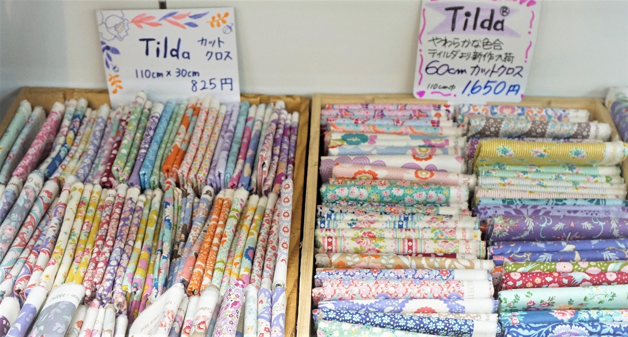 ティルダコーナーには新柄以外にもマスクやエコバッグ、クッション、カルトナージュなどに使ってみたくなる可愛い生地が豊富に揃っております。