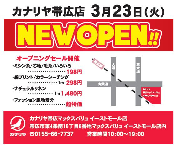 2021年3月23日(火)帯広マックスバリュイーストモール店内カナリヤ帯広店NEW OPEN致します!