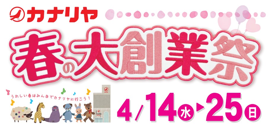 2021年4月14日(水)~25日(日)までカナリヤ本店・各支店では「春の大創業祭」を開催! 【現在終了