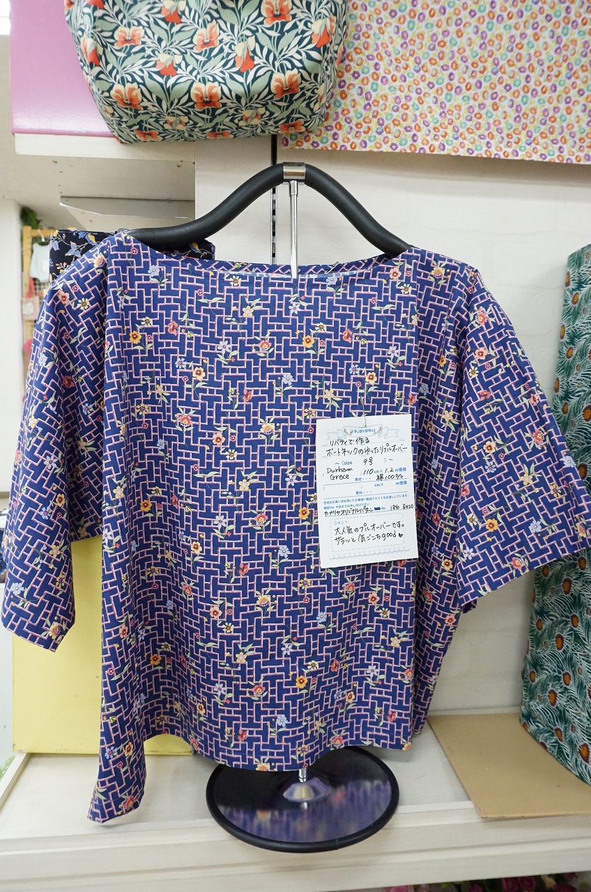 生活に欠かせなくなりましたマスク、プリントの美しさが際立つブラウス、おうち時間のおしゃれに使えるクロスヘアターバン、手元のおしゃれにカットクロスで作れる三つ編みブレスレット等、リバティプリントで作りたくなるものが見本でご覧いただけます。