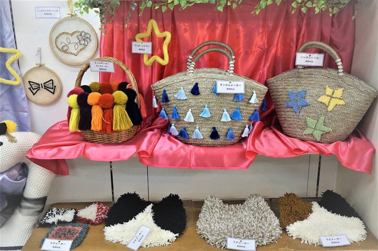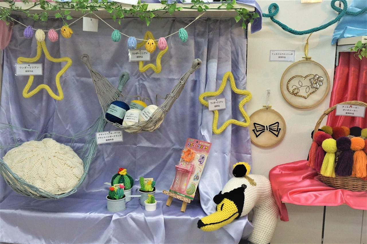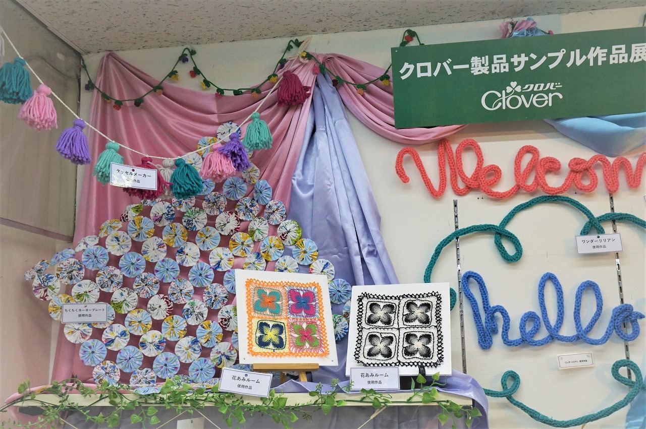 どの作品も可愛く、クロバーさんの商品「タッセルメーカー」や「花あみルーム」、「ワンダーリリアン」等、毛糸を使った手芸が初めての方でも楽しく作れる作品をご覧頂けます!!