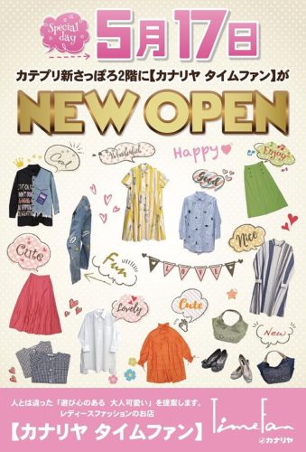 ータイムファンからのお知らせですー 新さっぽろカテプリ2階にカナリヤプロデュースブランド「タイムファン」が2022年5月17日(火)よりNe...