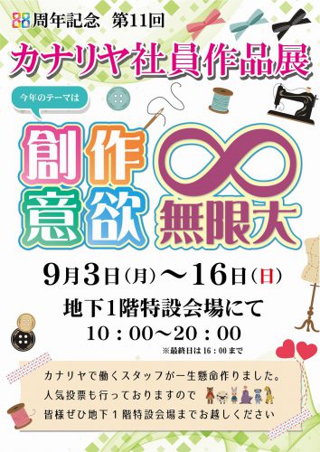 本日、2018年9月5日(水)にて 「第11回 カナリヤ社員作品展」の会場の様子を動画にて配信致しました。 Youtubeにてご覧頂けます。...