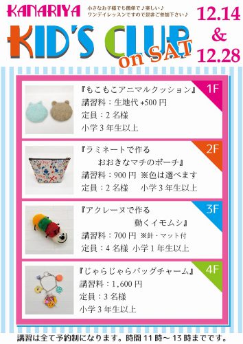終了致しました。 ↓ ~3階・4階ワンデーレッスンご案内~(12月分) カナリヤ本店3階・4階では、ワンデーレッスンが充実致しております。 ...