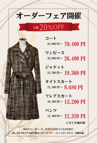 ↓終了致しました。 ☆本店2階からのお知らせです☆ 只今本店2階では「オーダーフェア」を開催致しております。 工賃20%OFFで通常価格より...