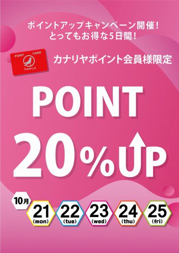 ↓ ポイントアップキャンペーンは終了致しました。 ☆予告☆ ポイントアップキャンペーン開催!! とってもお得な5日間♪ <カナリヤポイント会...