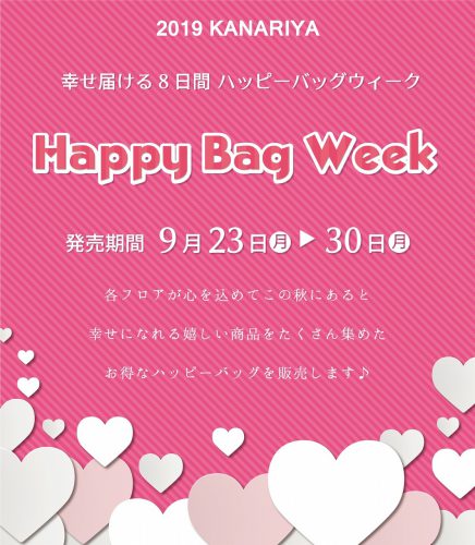 ↓ 終了致しました。 ☆カナリヤ本店からのお知らせです☆ 2019年9月23日(月・祝)~30日(月)までの期間、カナリヤ本店にて「ハッピー...