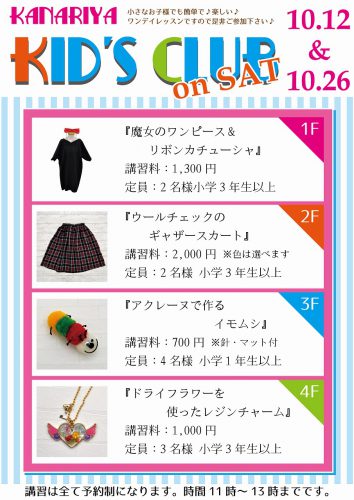 ↓終了致しました。 ~本店キッズクラブ ご案内~ 小学生対象のキッズクラブ ☆ カナリヤ本店では「キッズクラブ」10月分(10/12・26 ...
