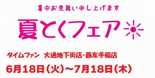 ↓ 終了致しました。 ☆タイムファン大通地下街店・西友手稲店からのお知らせです☆ 2019年6月18日(火)~7月18日(木)までの期間、タ...