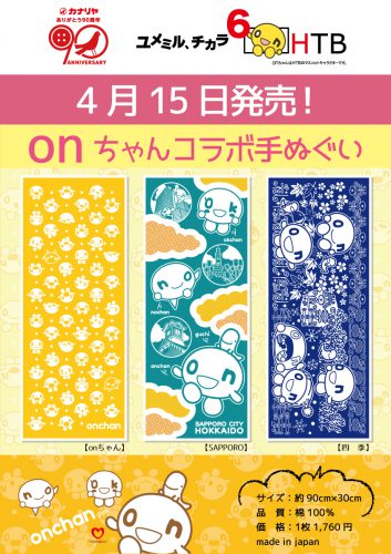 ☆カナリヤ本店からのお知らせ☆ 2020年4月15日(水)、カナリヤにて「onちゃんコラボ手ぬぐい」が発売!! HTB様×カナリヤコラボ商品...