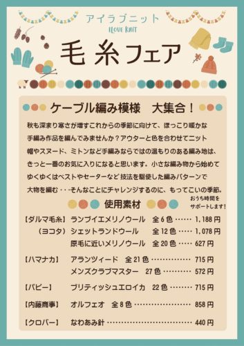 終了致しました。終了後も4階では秋冬向けの毛糸を取り揃えております。 ↓ ーカナリヤ本店4階からのお知らせですー 2021年11月からカナリ...