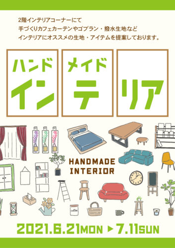 ハンドメイドインテリアフェアは終了致しました。尚、インテリアオーダー受付やインテリア向けの生地は豊富に取り揃えております。 ↓ ーカナリヤ本...