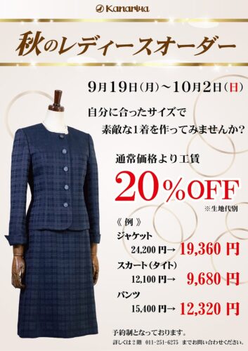終了致しました。 ↓ ー本店2階からのお知らせですー 2022年9月19日(月)~10月2日(日)までの期間、カナリヤ本店2階にて「秋のレデ...