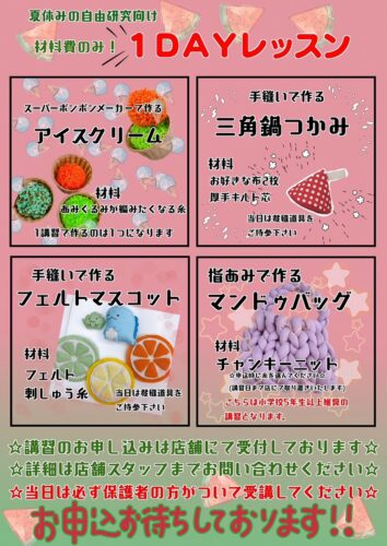 終了致しました。講習を受けて下さった皆様、ありがとうございました。 ↓ ーカナリヤ帯広店からのお知らせですー 2023年8月1日(火)~8月...