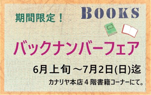 終了致しました。 ↓ ーカナリヤ本店4階からのお知らせですー 2023年6月上旬~7月2日(日)迄、カナリヤ本店4階書籍コーナー内において「...