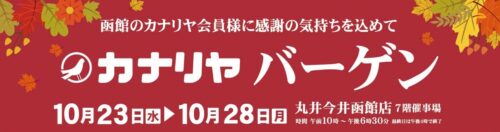 終了いたしました。 ご来場いただきありがとうございました。 ―函館在住の方にお知らせです― 函館催事「カナリヤバーゲン」を開催...