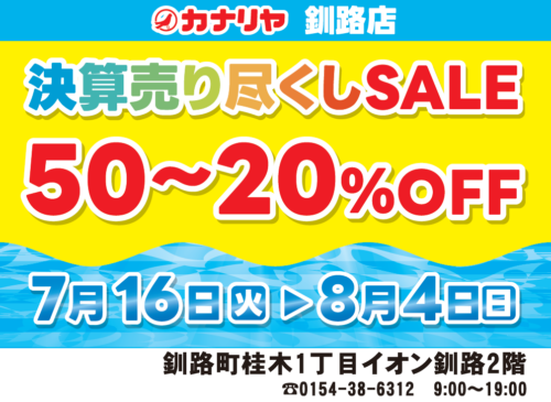 終了致しました。 ↓ ーカナリヤ釧路店からのお知らせですー 2024年7月16日(火)~8月4日(日)までの期間、カナリヤ釧路店にて「決算売...
