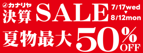 終了致しました。 ↓ ーカナリヤからのお知らせですー 2024年7月17日(水)~8月12日(月・祝)迄の期間、カナリヤ本店にて「決算SAL...