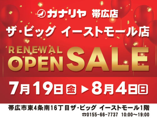 終了致しました。 ↓ ー帯広店からのお知らせですー 2024年7月19日(金)~8月4日(日)までの期間、カナリヤ帯広店は「ザ・ビッグ イー...