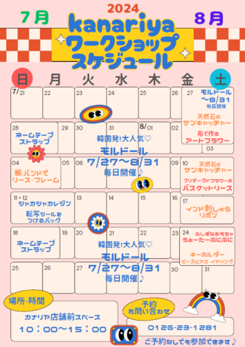 終了致しました。 ↓ ーカナリヤ岩見沢店から夏のワークショップご案内ー 2024年7月27日(土)~8月31日(土)までの期間、カナリヤ岩見...