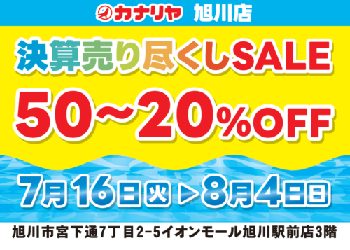 終了致しました。 ↓ ーカナリヤ旭川店からのお知らせですー 2024年7月16日(火)~8月4日(日)までの期間、カナリヤ旭川店にて「決算売...