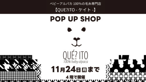 【4階】QUE?ITO -ケイト- POP UP SHOP 希少なベビーアルパカ100%の毛糸のお店 QUE?ITO -ケイト- の POP...