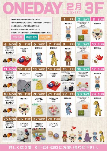 ~3階・4階ワンデーレッスンご案内~(2月分) ※終了しました。 カナリヤ本店3階・4階では、ワンデーレッスンが充実致しております。 ※本...