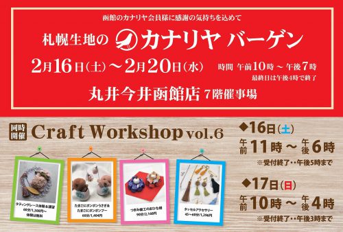 ☆カナリヤからのお知らせです☆ 函館在住の方へニュースです♪ 2019年2月16日(土)~2月20日(水)まで5日間、丸井今井函館店7階催事...