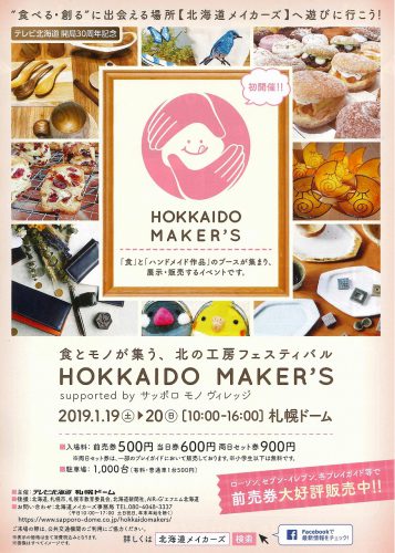2019年1月19日(土)・20日(日)の2日間、札幌ドームにて食とモノが集う、北の工房フェルティバル「HOKKAIDO MAKER’S」を...